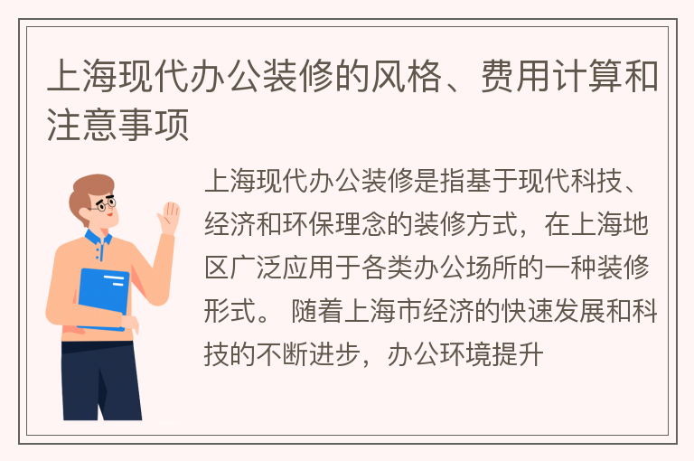 上海现代办公装修是指基于现代科技、经济和环保理念的装修方式,在上海地区广泛应用于各类办公场所的一种装修形式。 随着上海市经济的快速发展和科技的不断进步,办公环境提升......【点击详情】
