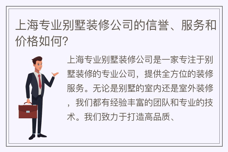 上海专业别墅装修公司的信誉、服务和价格如何?