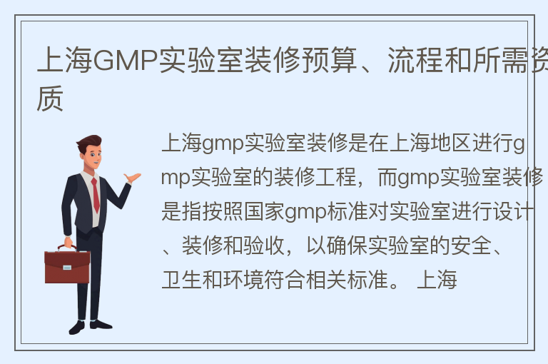 上海gmp实验室装修是在上海地区进行gmp实验室的装修工程,而gmp实验室装修是指按照国家gmp标准对实验室进行设计、装修和验收,以确保实验室的安全、卫生和环境符合相关标准。 上海......【点击详情】