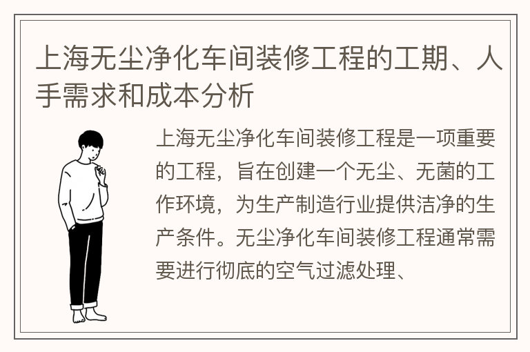 上海无尘净化车间装修工程的工期、人手需求和成本分析