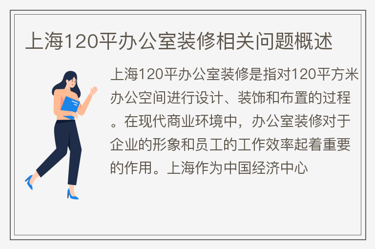 上海120平办公室装修是指对120平方米办公空间进行设计、装饰和布置的过程。在现代商业环境中,办公室装修对于企业的形象和员工的工作效率起着重要的作用。上海作为中国经济中心......【点击详情】