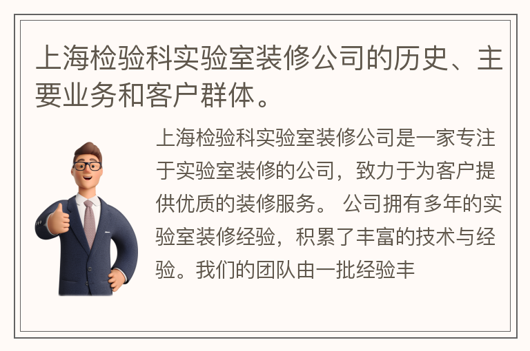 上海检验科实验室装修公司的历史、主要业务和客户群体。