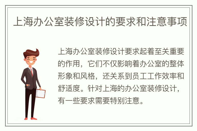 上海办公室装修设计要求起着至关重要的作用,它们不仅影响着办公室的整体形象和风格,还关系到员工工作效率和舒适度。针对上海的办公室装修设计,有一些要求需要特别注意。......【点击详情】
