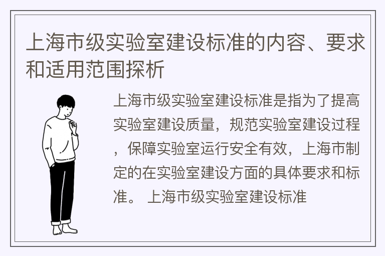 上海市级实验室建设标准的内容、要求和适用范围探析