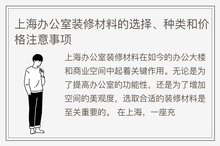 上海办公室装修材料的选择、种类和价格注意事项