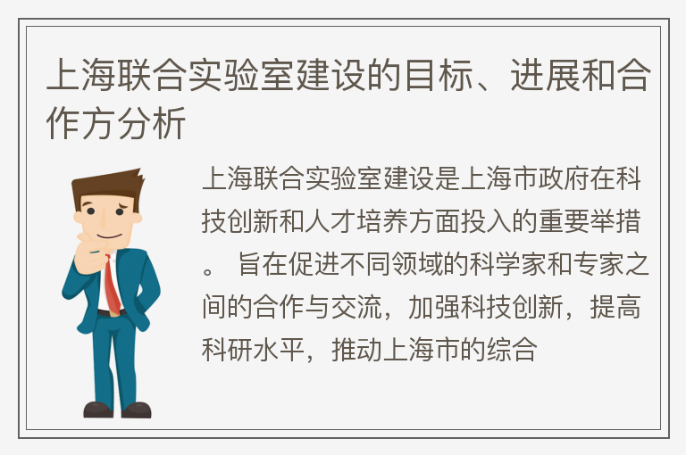 上海联合实验室建设是上海市政府在科技创新和人才培养方面投入的重要举措。 旨在促进不同领域的科学家和专家之间的合作与交流,加强科技创新,提高科研水平,推动上海市的综合......【点击详情】