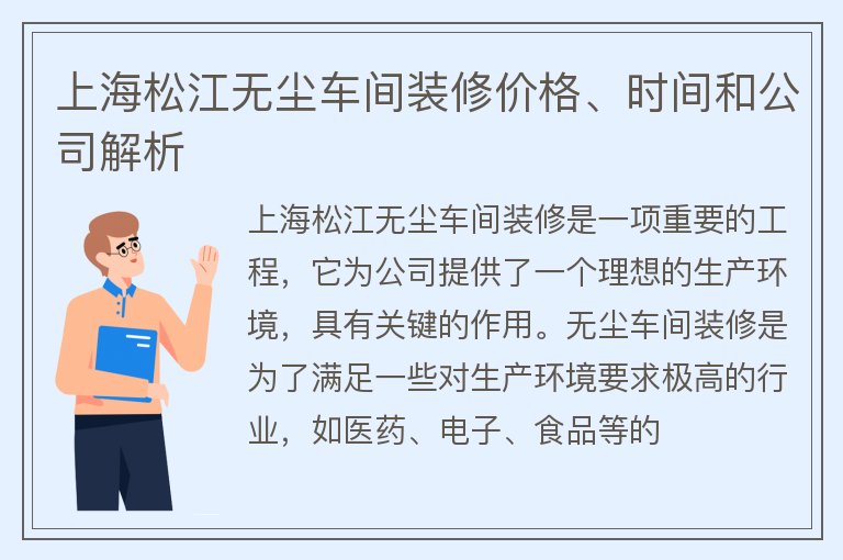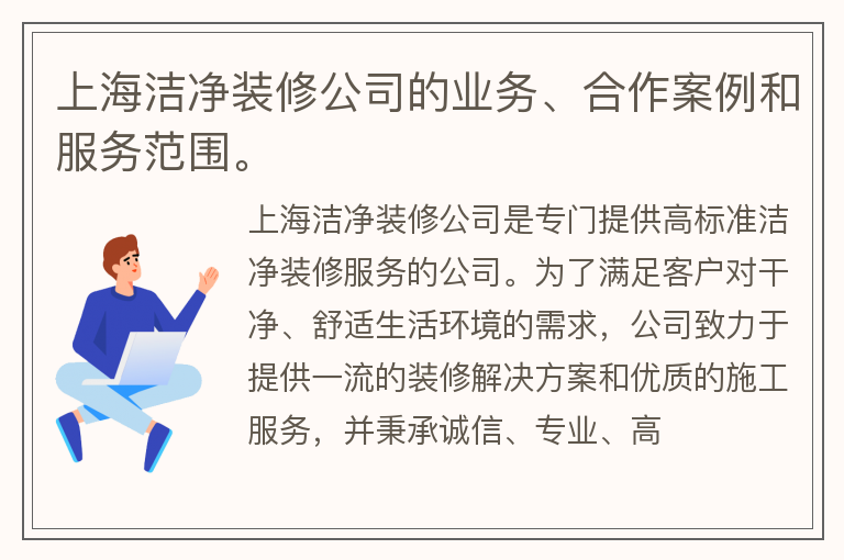 上海洁净装修公司是专门提供高标准洁净装修服务的公司。为了满足客户对干净、舒适生活环境的需求,公司致力于提供一流的装修解决方案和优质的施工服务,并秉承诚信、专业、高......【点击详情】