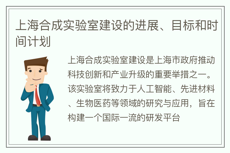 上海合成实验室建设是上海市政府推动科技创新和产业升级的重要举措之一。该实验室将致力于人工智能、先进材料、生物医药等领域的研究与应用,旨在构建一个国际一流的研发平台......【点击详情】