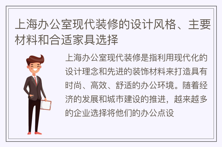 上海办公室现代装修的设计风格、主要材料和合适家具选择