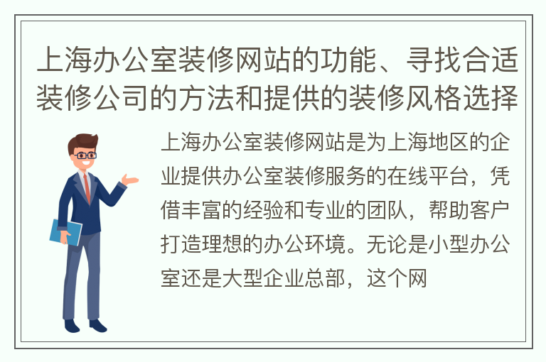 上海办公室装修网站的功能、寻找合适装修公司的方法和提供的装修风格选择