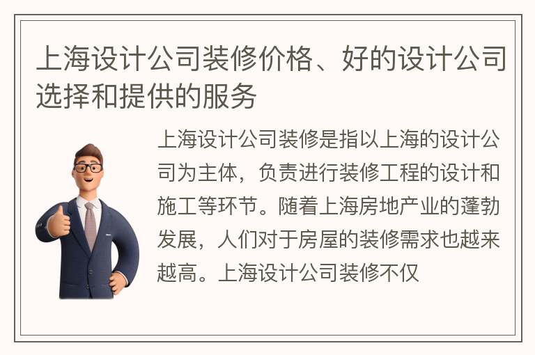 上海设计公司装修价格、好的设计公司选择和提供的服务