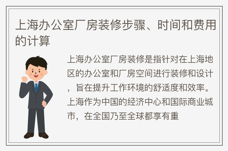 上海办公室厂房装修是指针对在上海地区的办公室和厂房空间进行装修和设计,旨在提升工作环境的舒适度和效率。上海作为中国的经济中心和国际商业城市,在全国乃至全球都享有重......【点击详情】