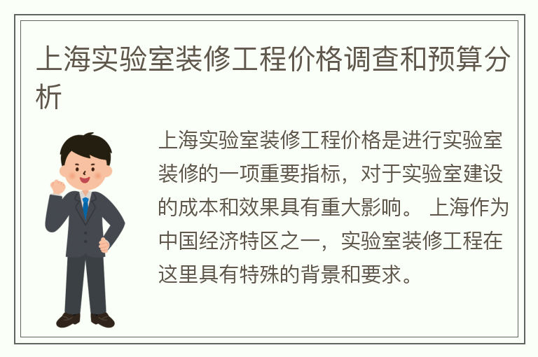 上海实验室装修工程价格是进行实验室装修的一项重要指标,对于实验室建设的成本和效果具有重大影响。 上海作为中国经济特区之一,实验室装修工程在这里具有特殊的背景和要求。......【点击详情】