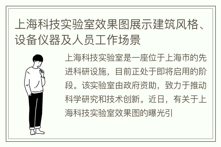 上海科技实验室效果图展示建筑风格、设备仪器及人员工作场景