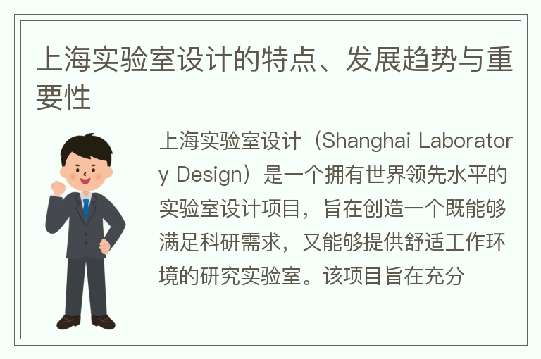 上海实验室设计(Shanghai Laboratory Design)是一个拥有世界领先水平的实验室设计项目,旨在创造一个既能够满足科研需求,又能够提供舒适工作环境的研究实验室。该项目旨在充分......【点击详情】