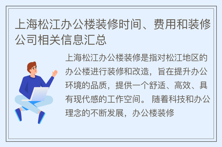 上海松江办公楼装修时间、费用和装修公司相关信息汇总