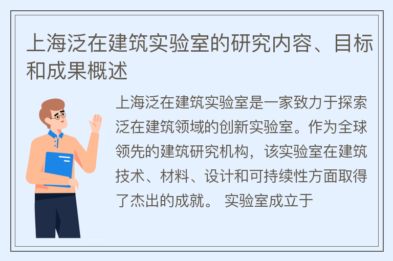 上海泛在建筑实验室的研究内容、目标和成果概述