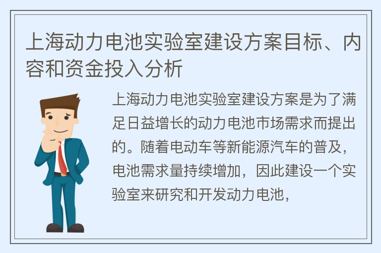 上海动力电池实验室建设方案目标、内容和资金投入分析