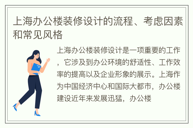 上海办公楼装修设计的流程、考虑因素和常见风格