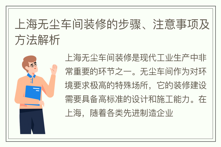 上海无尘车间装修是现代工业生产中非常重要的环节之一。无尘车间作为对环境要求极高的特殊场所,它的装修建设需要具备高标准的设计和施工能力。在上海,随着各类先进制造企业......【点击详情】