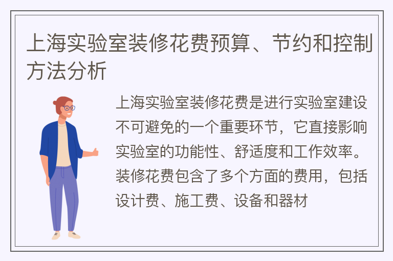 上海实验室装修花费是进行实验室建设不可避免的一个重要环节,它直接影响实验室的功能性、舒适度和工作效率。装修花费包含了多个方面的费用,包括设计费、施工费、设备和器材......【点击详情】