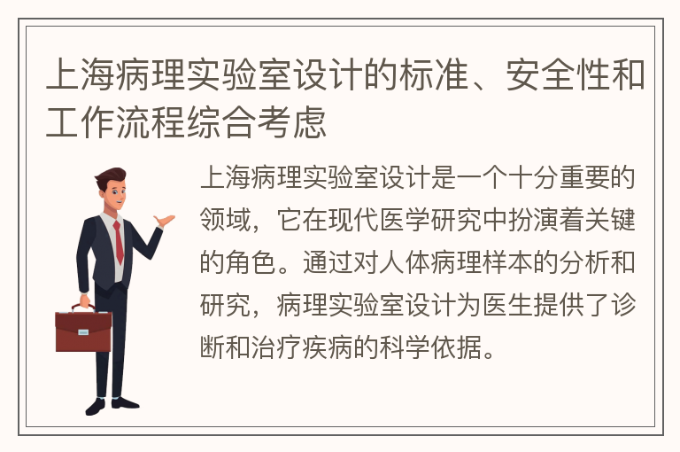 上海病理实验室设计的标准、安全性和工作流程综合考虑