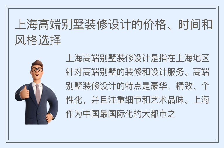 上海高端别墅装修设计是指在上海地区针对高端别墅的装修和设计服务。高端别墅装修设计的特点是豪华、精致、个性化,并且注重细节和艺术品味。上海作为中国最国际化的大都市之......【点击详情】