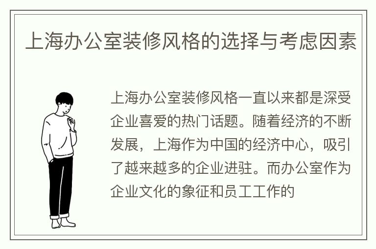 上海办公室装修风格一直以来都是深受企业喜爱的热门话题。随着经济的不断发展,上海作为中国的经济中心,吸引了越来越多的企业进驻。而办公室作为企业文化的象征和员工工作的......【点击详情】