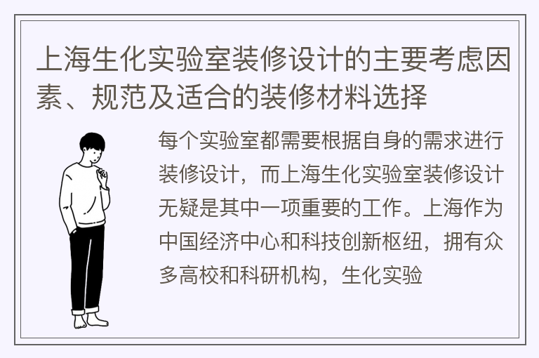 上海生化实验室装修设计的主要考虑因素、规范及适合的装修材料选择