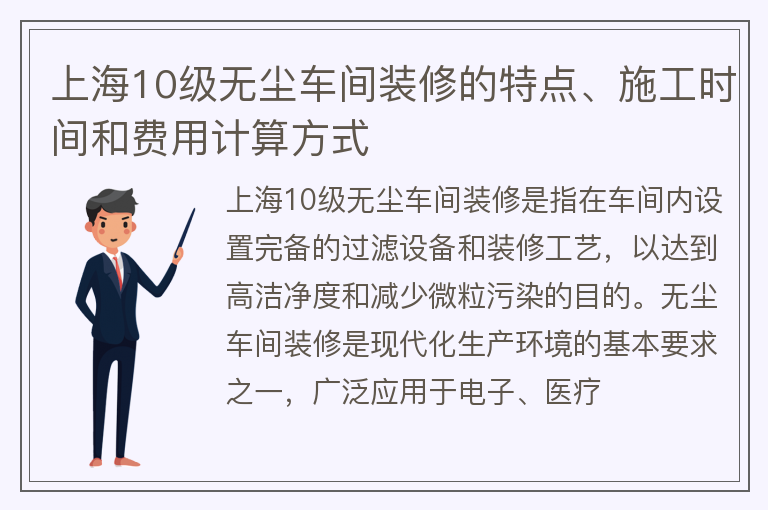 上海10级无尘车间装修的特点、施工时间和费用计算方式
