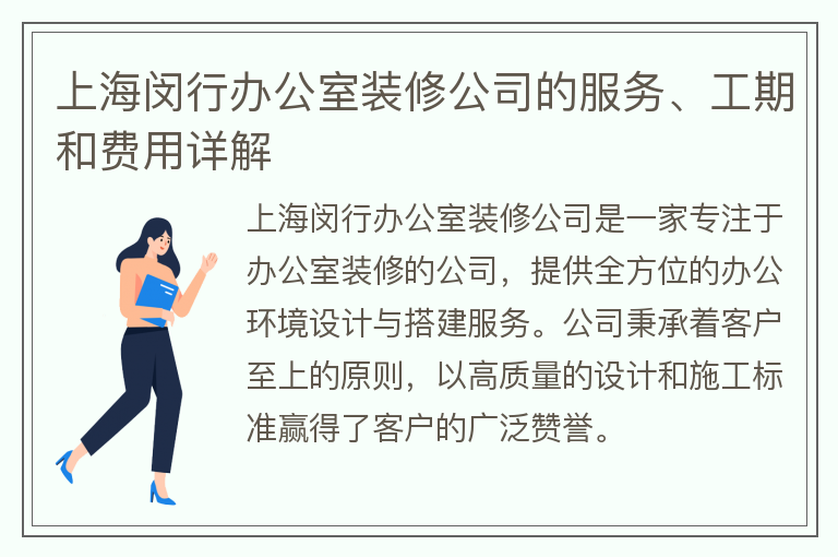 上海闵行办公室装修公司的服务、工期和费用详解