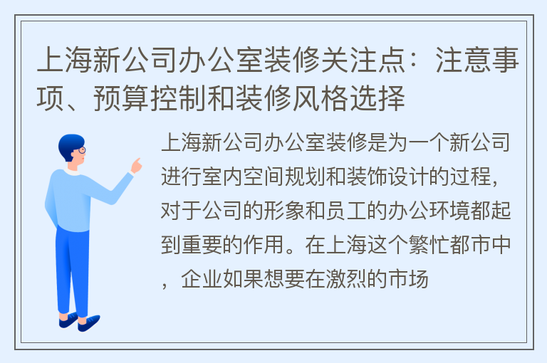 上海新公司办公室装修关注点:注意事项、预算控制和装修风格选择