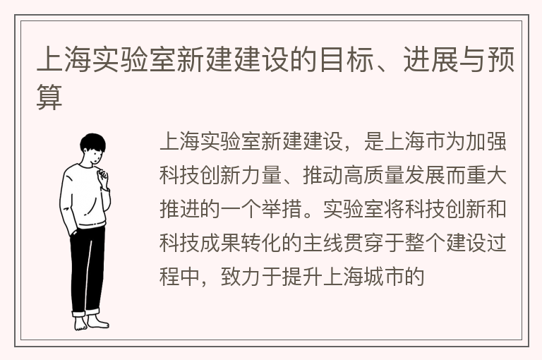 上海实验室新建建设,是上海市为加强科技创新力量、推动高质量发展而重大推进的一个举措。实验室将科技创新和科技成果转化的主线贯穿于整个建设过程中,致力于提升上海城市的......【点击详情】