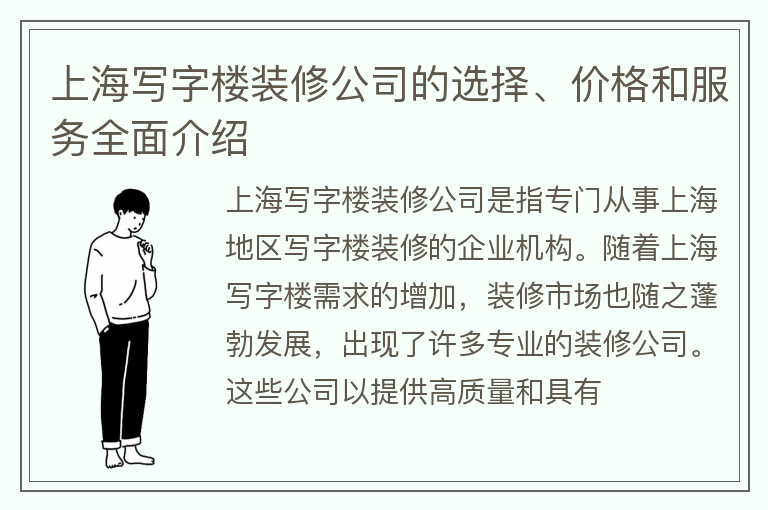 上海写字楼装修公司的选择、价格和服务全面介绍