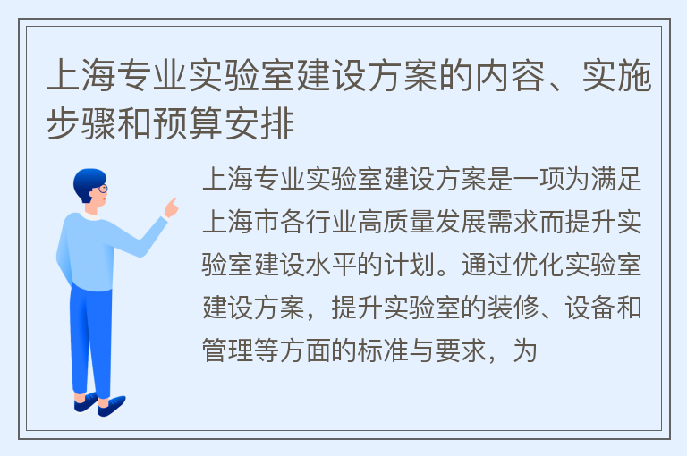 上海专业实验室建设方案的内容、实施步骤和预算安排