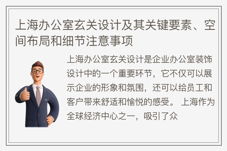 上海办公室玄关设计及其关键要素、空间布局和细节注意事项