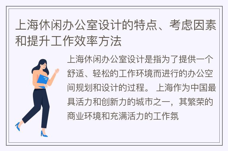 上海休闲办公室设计的特点、考虑因素和提升工作效率方法