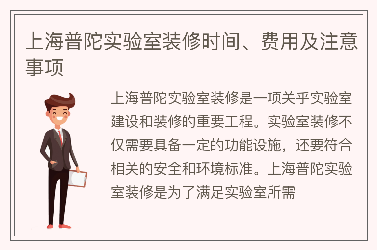 上海普陀实验室装修是一项关乎实验室建设和装修的重要工程。实验室装修不仅需要具备一定的功能设施,还要符合相关的安全和环境标准。上海普陀实验室装修是为了满足实验室所需......【点击详情】
