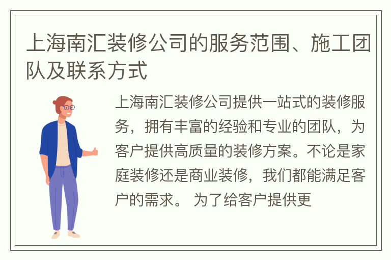 上海南汇装修公司的服务范围、施工团队及联系方式