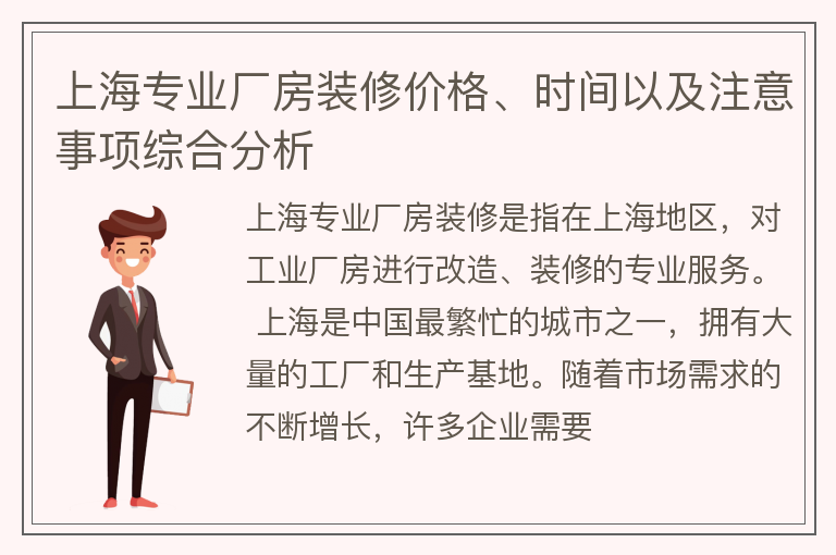 上海专业厂房装修价格、时间以及注意事项综合分析