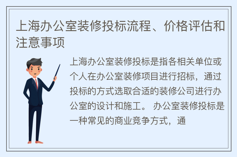 上海办公室装修投标是指各相关单位或个人在办公室装修项目进行招标,通过投标的方式选取合适的装修公司进行办公室的设计和施工。 办公室装修投标是一种常见的商业竞争方式,通......【点击详情】