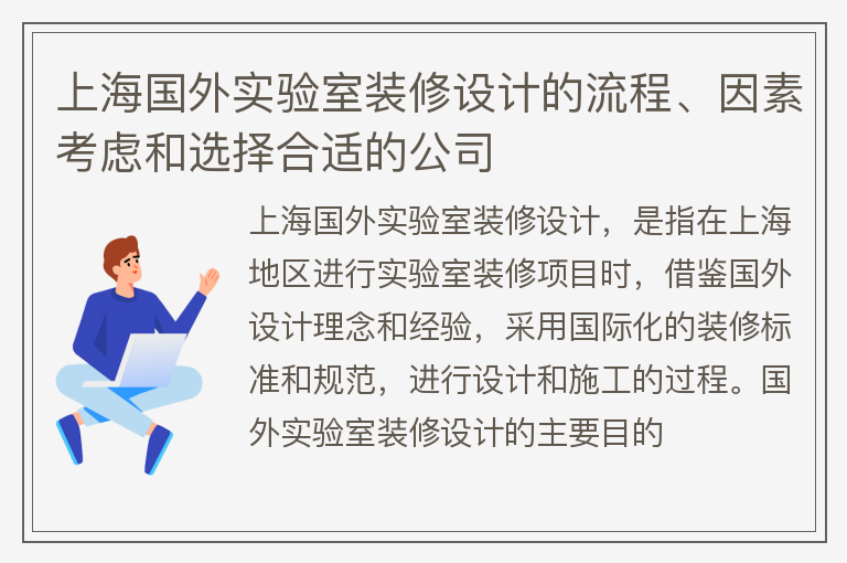 上海国外实验室装修设计的流程、因素考虑和选择合适的公司
