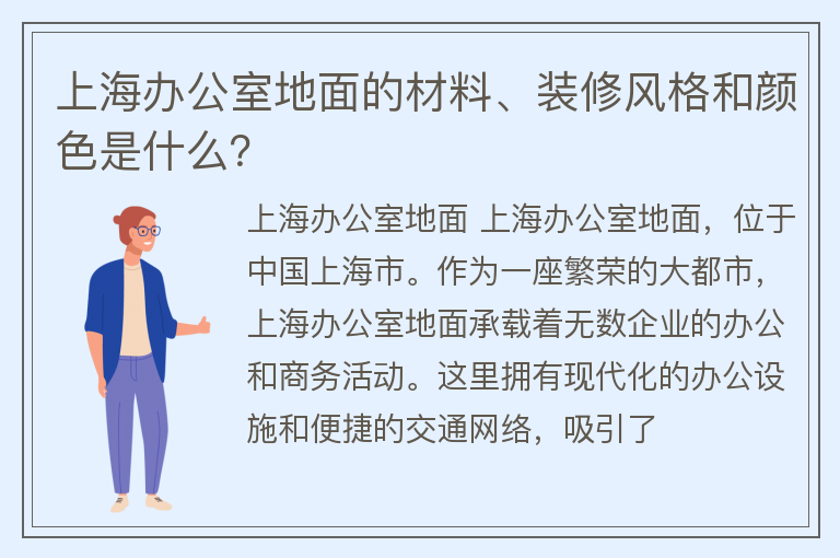 上海办公室地面 上海办公室地面,位于中国上海市。作为一座繁荣的大都市,上海办公室地面承载着无数企业的办公和商务活动。这里拥有现代化的办公设施和便捷的交通网络,吸引了......【点击详情】