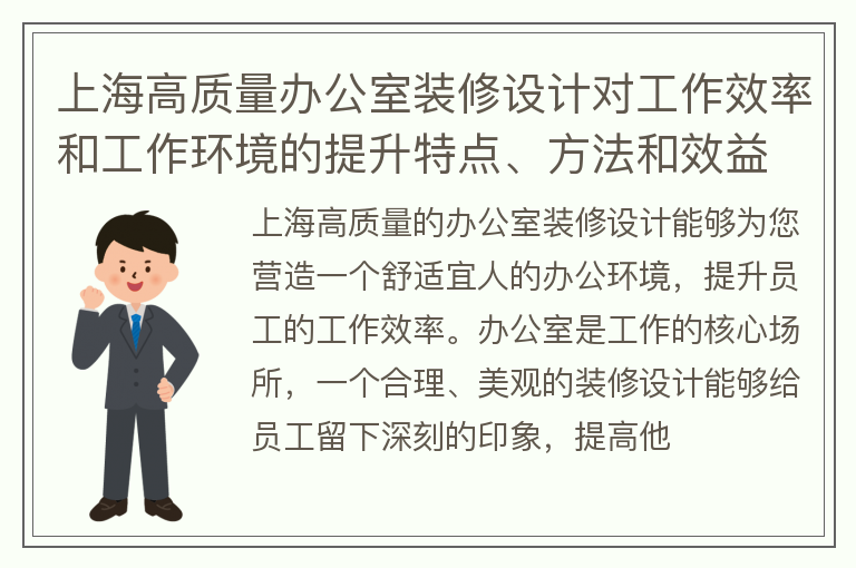 上海高质量办公室装修设计对工作效率和工作环境的提升特点、方法和效益