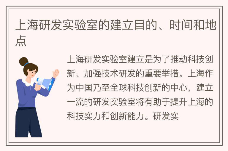 上海研发实验室建立是为了推动科技创新、加强技术研发的重要举措。上海作为中国乃至全球科技创新的中心,建立一流的研发实验室将有助于提升上海的科技实力和创新能力。研发实......【点击详情】