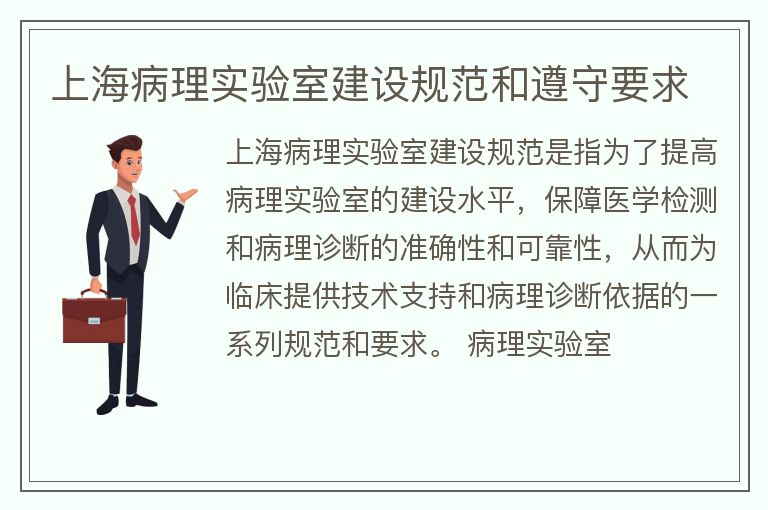上海病理实验室建设规范是指为了提高病理实验室的建设水平,保障医学检测和病理诊断的准确性和可靠性,从而为临床提供技术支持和病理诊断依据的一系列规范和要求。 病理实验室......【点击详情】