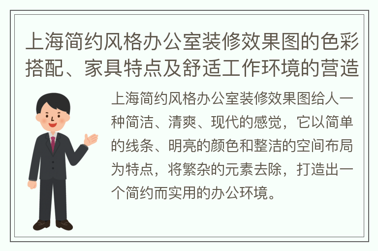 上海简约风格办公室装修效果图的色彩搭配、家具特点及舒适工作环境的营造