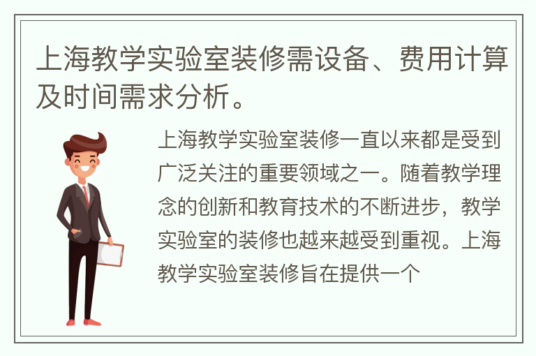 上海教学实验室装修需设备、费用计算及时间需求分析。