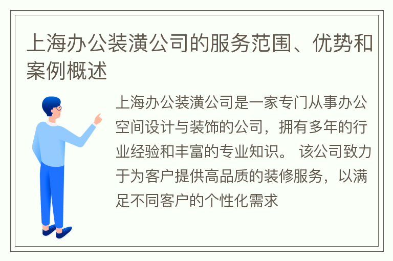 上海办公装潢公司的服务范围、优势和案例概述