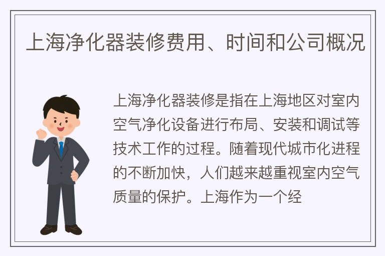 上海净化器装修是指在上海地区对室内空气净化设备进行布局、安装和调试等技术工作的过程。随着现代城市化进程的不断加快,人们越来越重视室内空气质量的保护。上海作为一个经......【点击详情】
